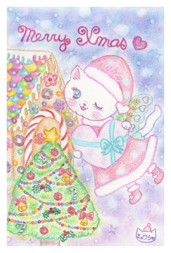 クリスマスイブの夜に、猫の妖精のニャンタクロースが、お菓子の家に住むあなたに、愛情のプレゼントを持ってきた様子です(*ฅ́˘ฅ̀*)❤️✨